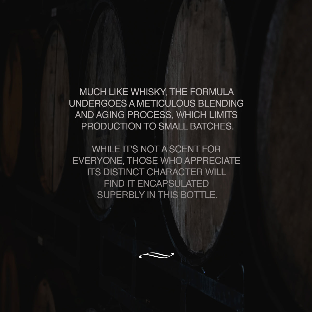 Much like whisky, the formula undergoes a meticulous blending and aging process, which limits production to small batches.