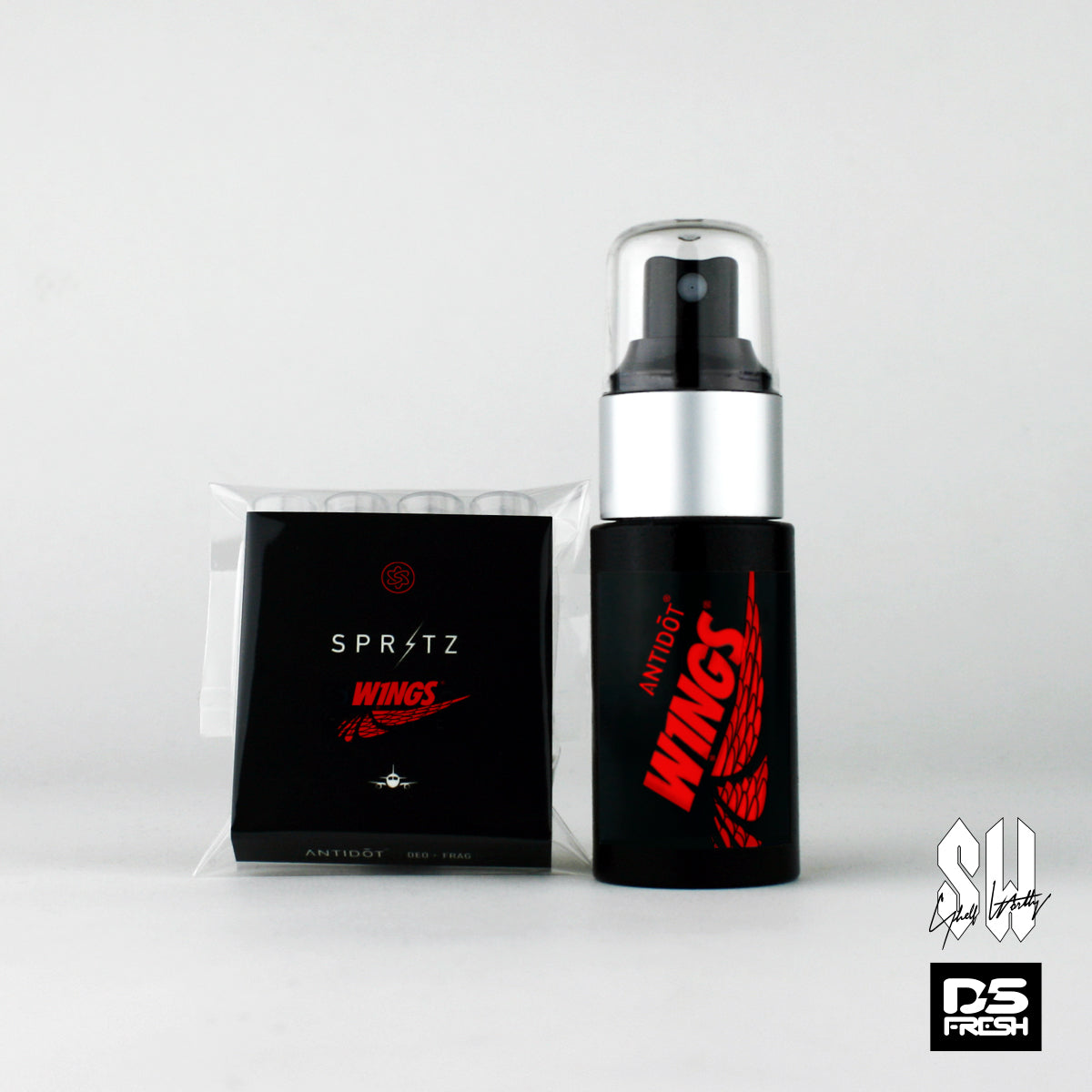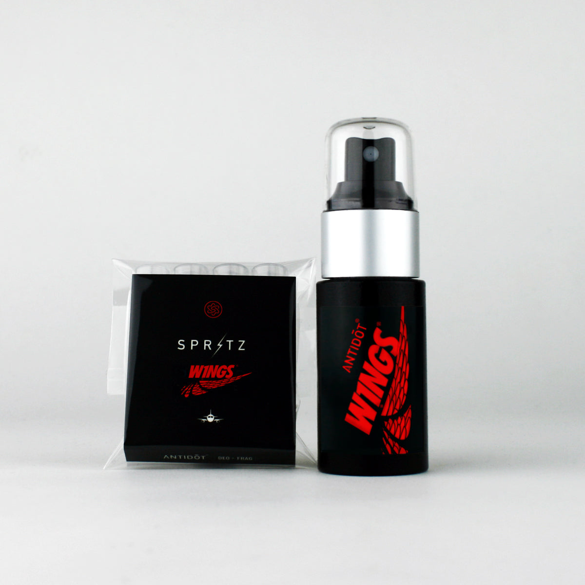 - Spritz Travel Pack includes: W1NGS fragrance (4 vials x 2 ml)