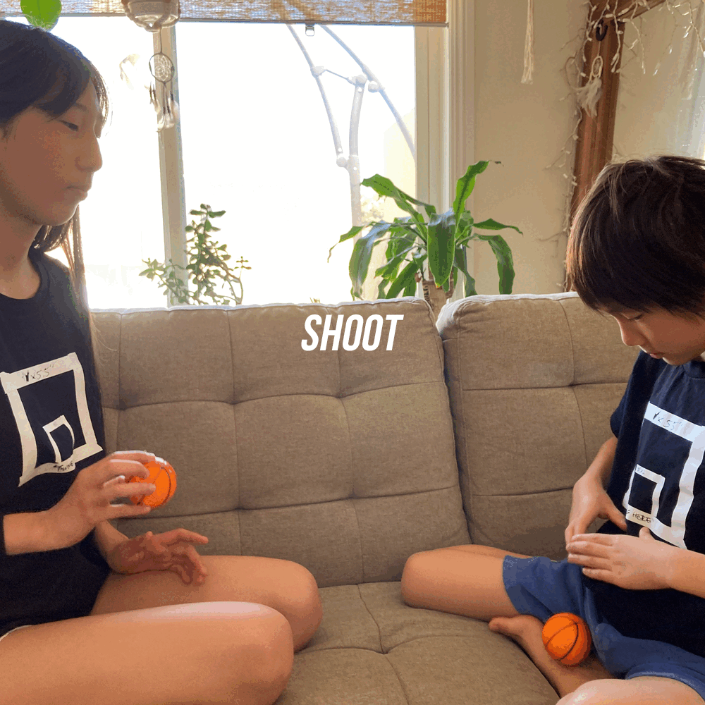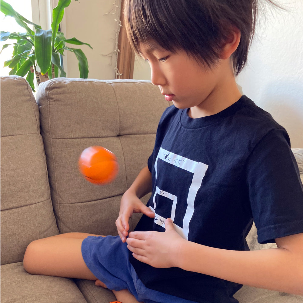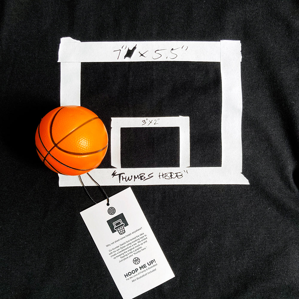 Co-founder Daichi first tested the idea with his son Dylan using masking tape to create a backboard on a tee. We ended up keeping the original mock-up and flipping it into a graphic. Just place your "thumbs here."